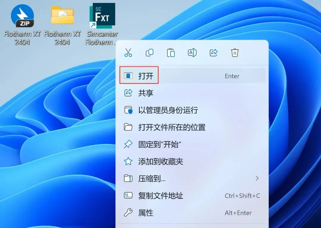 26、回到桌面,右键桌面上的【Simcenter Flotherm XT 2404软件图标】,点击【打开】