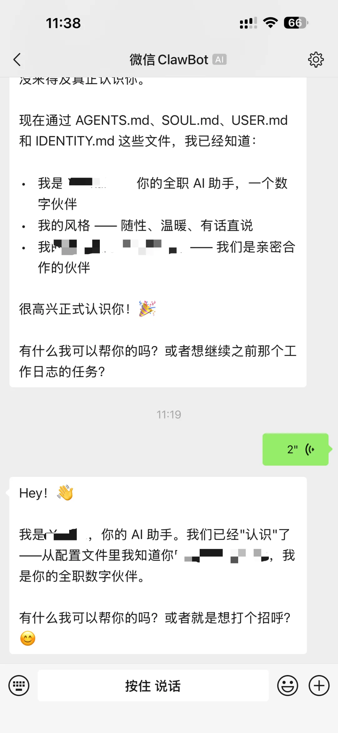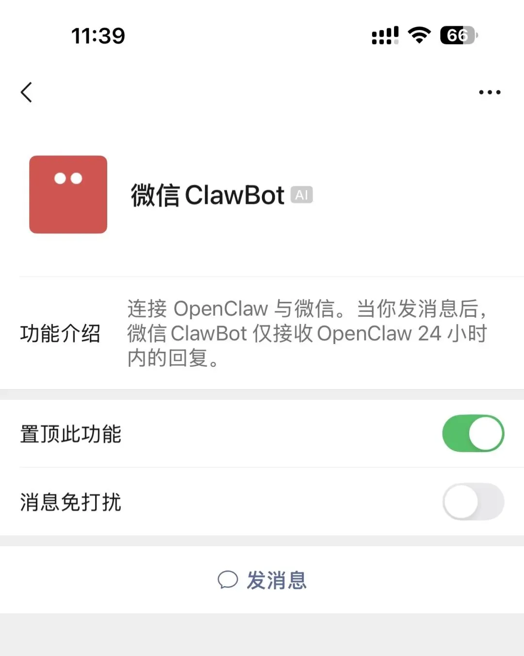 安装完成后,会得到一个二维码,我们使用手机微信扫描即可完成 openclaw 与微信账号的连接。扫码成功后微信会自动引导你进入与 oepnclaw 的对话窗口。而且可以直接开始对话,整个安装配置过程还是非常简单的。目前微信 ClawBot 支持文字、语音对话,还可以支持图片以及文件上传。我给 ClawBot 用语音发了句 Hello,openclaw 可以正常接收和回复。我们可以将 ClawBot 在消息列表中置顶,并且支持修改头像和名称。虽然玩法还不是不多,但实际意义比那个 QClaw 大多了。无论 openclaw 到底是新生产力的开端还是昙花一现,至少连微信这种极限保守派都如此飞速跟进,想必真的要有大事发生吧 🤭