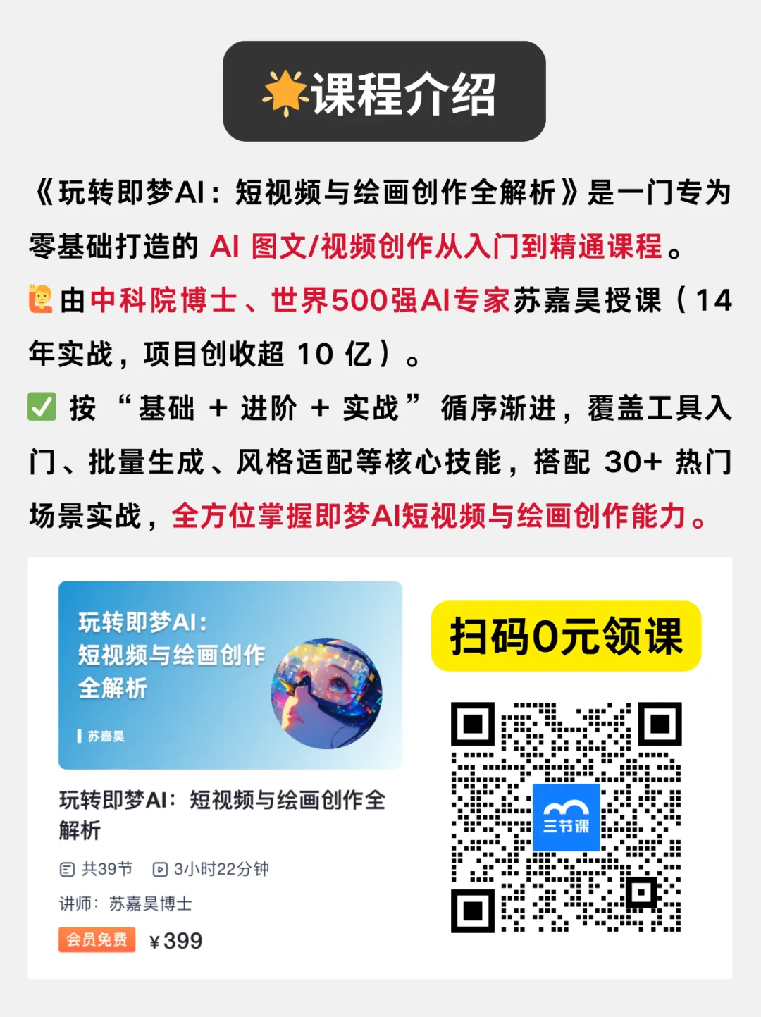 ✅ 《玩转即梦 AI:短视频与绘画创作全解析》课程