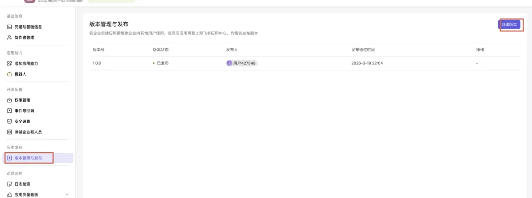 访问 飞书开放平台 登录你的飞书账号 点击"创建应用" 选择"企业内部应用"