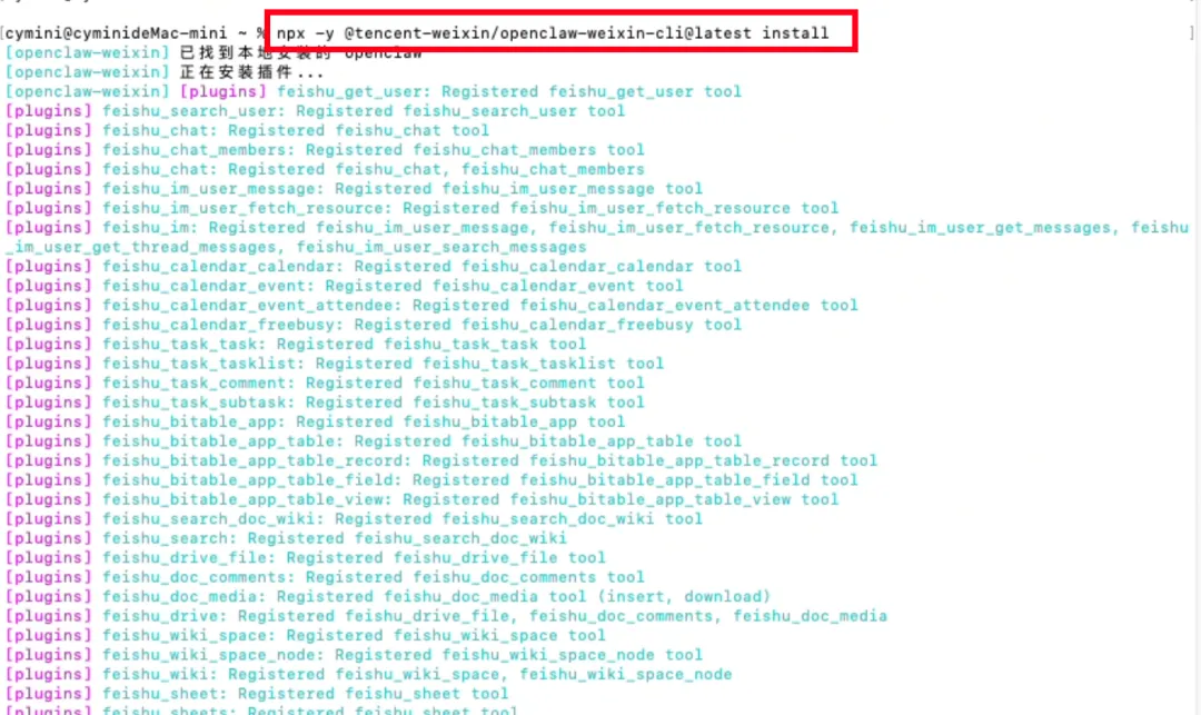 STEP · 01 打开终端 输入安装命令 TERMINAL npx -y @tencent-weixin/openclaw-weixin-cli@latest install 复制上面的命令,粘贴到终端里回车执行即可。 ![]() | |||