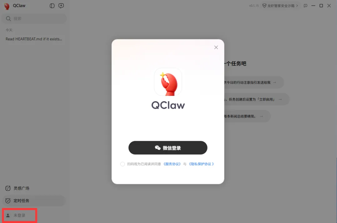 打开QClaw主界面,点击右下角,你会看到一个微信二维码。