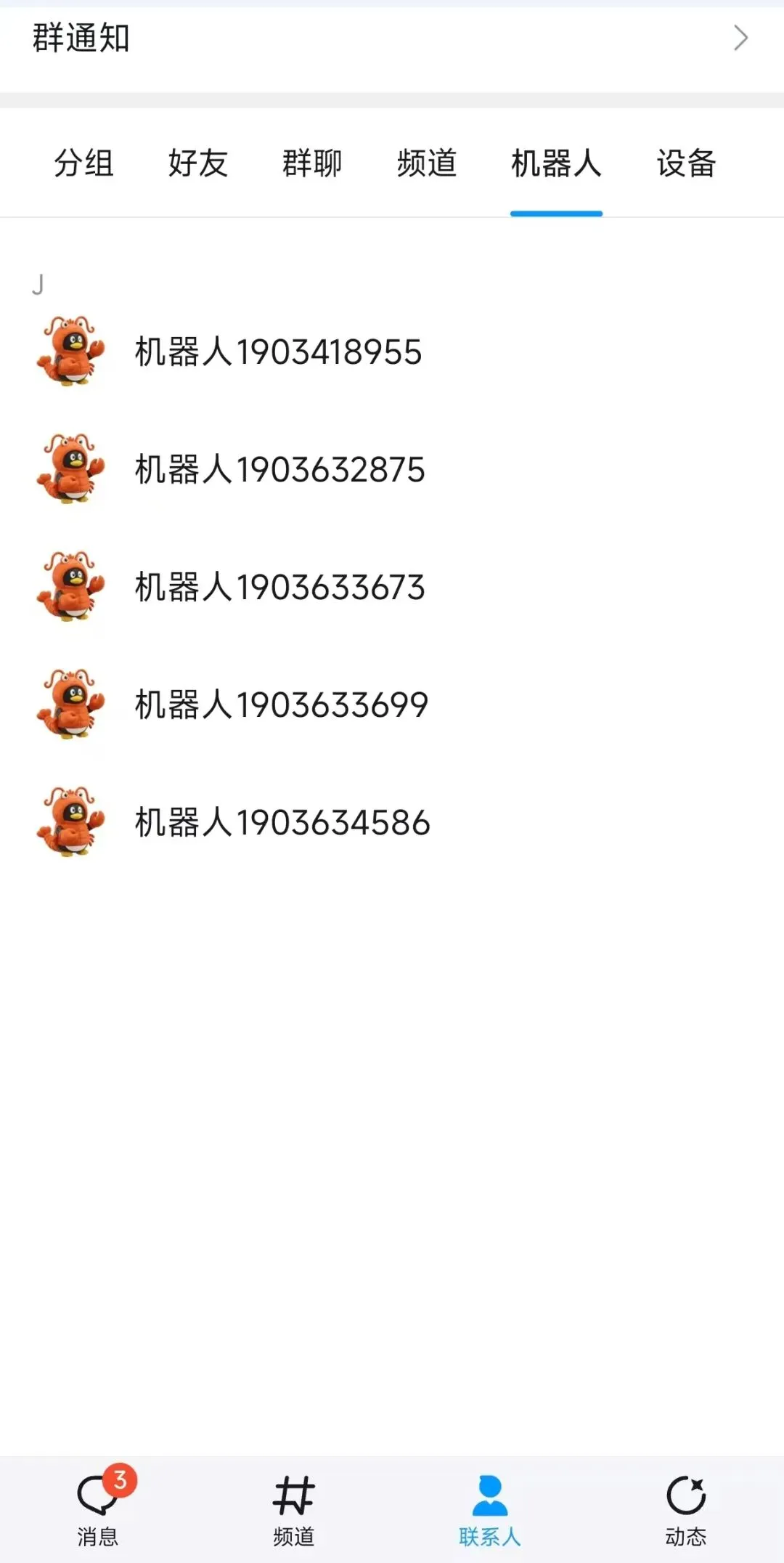 配置成功后会自动在聊天列表显示或在手机QQ客户端:联系人-机器人。