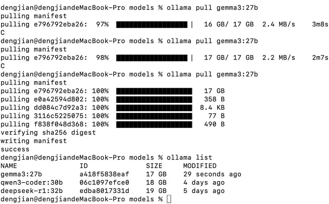 三个模型,加起来54GB,全在本地跑着。
