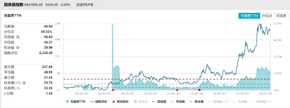 服务器指数估值(8841058.WI),来源:Wind