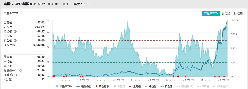 光模块指数估值(8841258.WI),来源:Wind