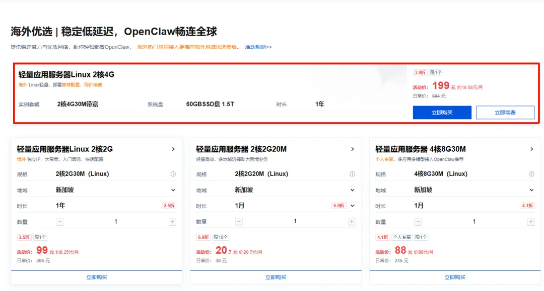 为什么?省心。开箱即用,不用折腾系统环境,而且有现成的 OpenClaw 镜像可以直接用。