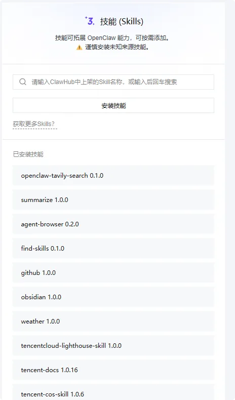 agent-browser:浏览器自动化,能帮你自动填表、抓数据 obsidian:笔记同步 summarize:自动总结网页/PDF 内容