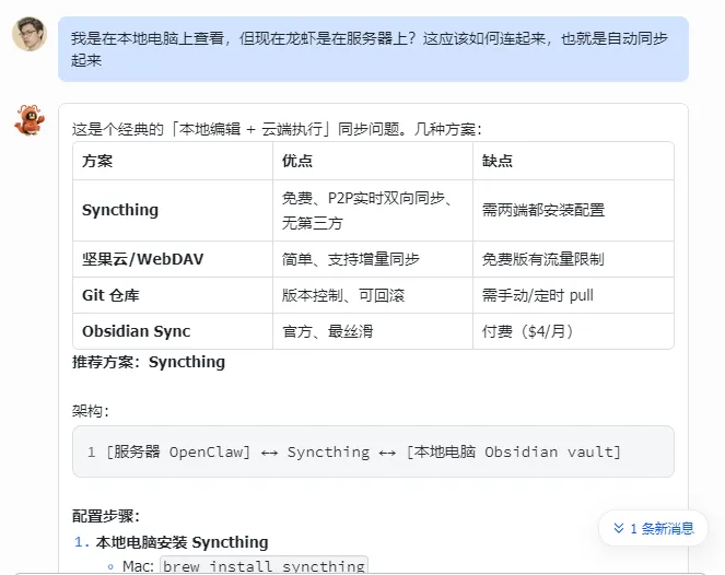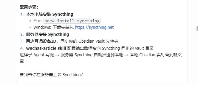 我想把云服务器上的文件自动同步到本地服务器,用obsidian客户端来沉淀我的内容资产并排版发布的。于是上了 Syncthing。