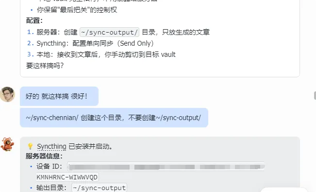 💡 听晨念一句劝:如果你想要双向同步,两边都要添加对方为设备。但如果你只是想从云服务器拉文件到本地,Send Only 就够了。我一开始搞反了,结果文件全乱了。别问我是怎么知道的。