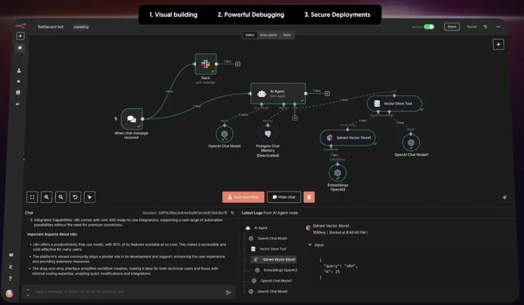400+集成节点,连接数据库、SaaS、IM工具,AI工作流的"乐高积木";