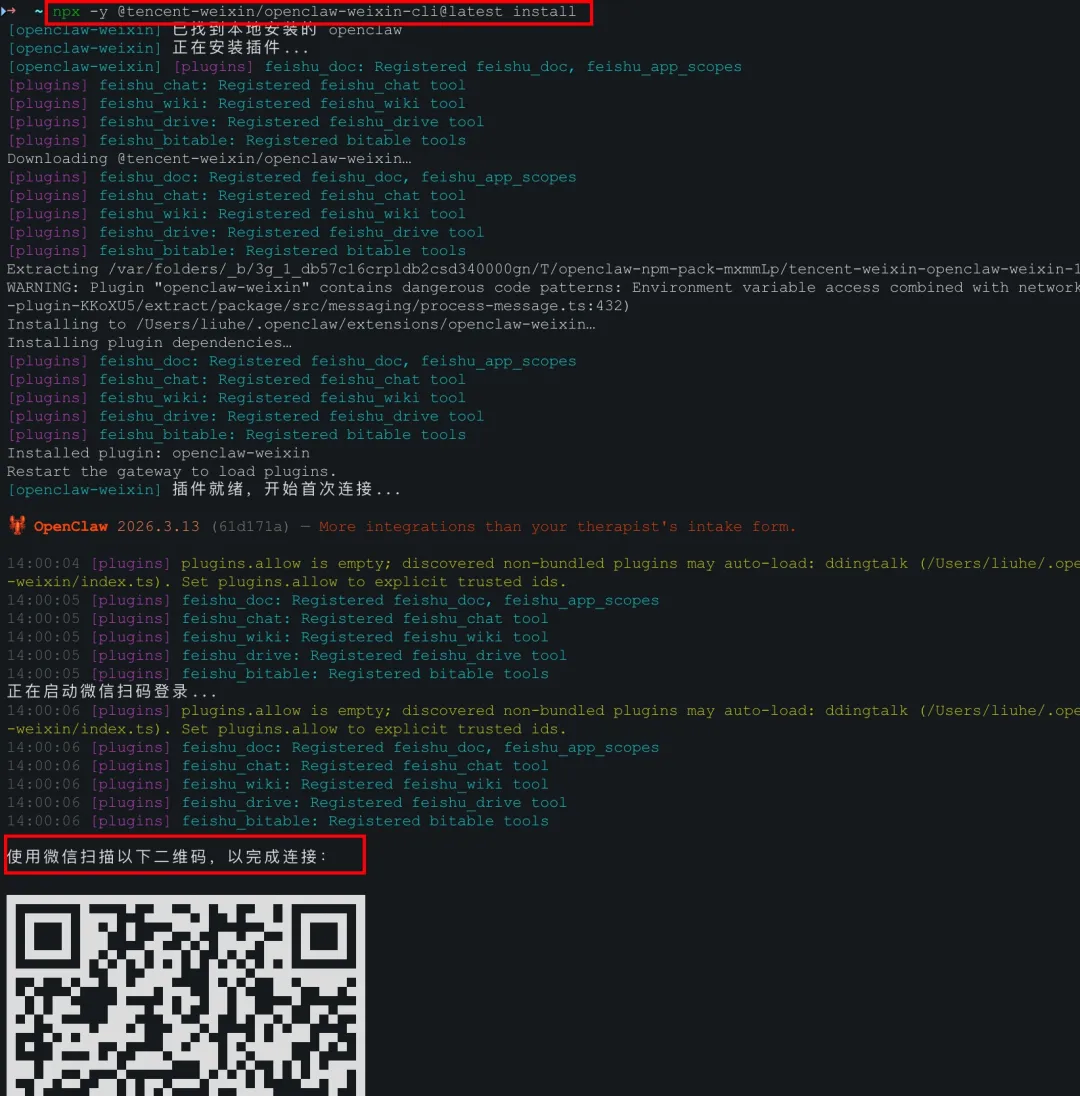 npx -y @tencent-weixin/openclaw-weixin-cli@latest install