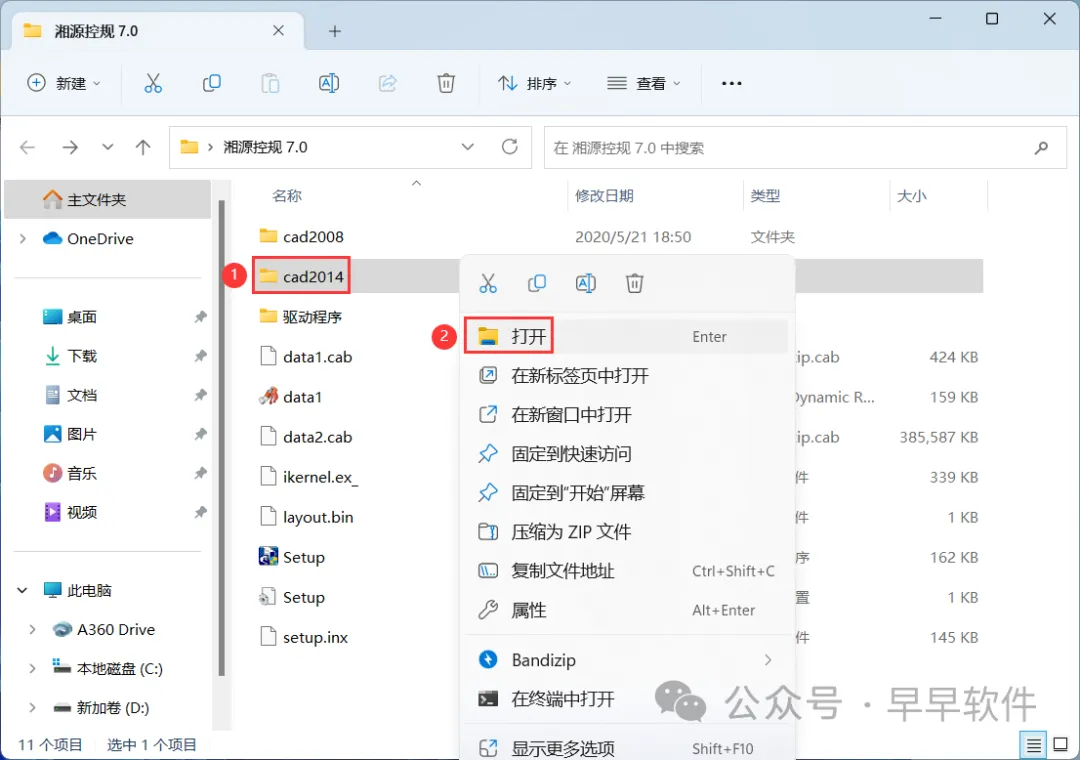 11、回到湘源控规 7.0文件夹,找到【cad2014】文件夹,右键【打开】它