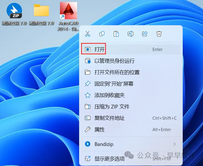 16、回到桌面,右键桌面上的【AutoCAD 2014软件图标】,点击【打开】