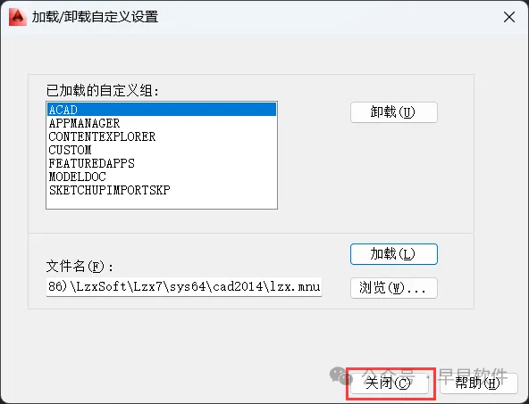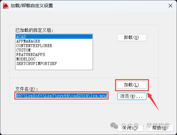 23、点击【加载】(若加载失败,重启AutoCAD 2014软件,弹窗允许软件加载即可)