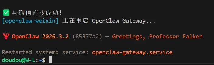 3. 在部署OpenClaw服务的设备,输入以下命令即可: