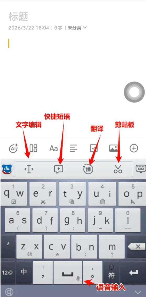 在使用手机编辑文档或做笔记时,能够进行精准选择,并进行复制、粘贴、删除等快捷操作。 - 快捷短语