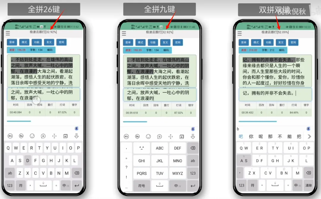 如果平常使用环境方便语音输入,那么使用豆包输入法能大大提高效率。 如果平常需要打字多一点但有时也想语音输入,那么百度输入法是目前比较均衡的选择。 如果主要是打字,双拼输入 + 双键键盘皮肤 是高效打字的诀窍。双拼练习快则两三天,慢则一周左右。(双拼输入法:一个字只需按两个键——第一个是声母,第二个是韵母,比如"商"字按"uh","城"字按"ig"。)如果你对打字实际速度测试感兴趣,后台回复【输入法】可获取大神测试视频。
