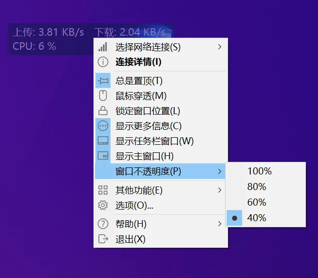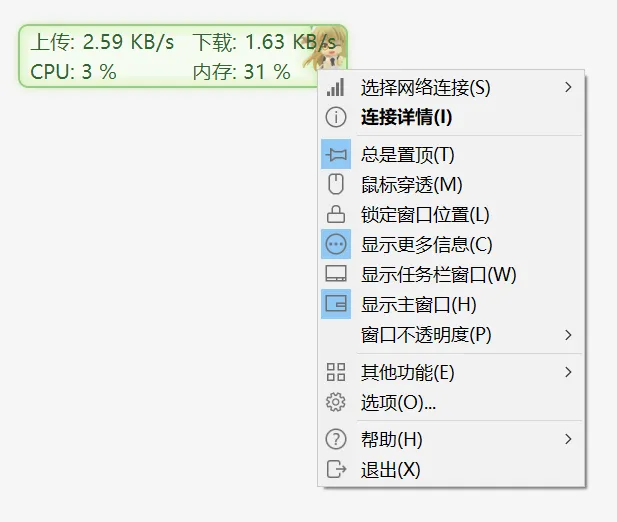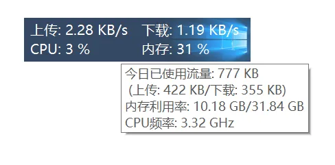 这款Windows 小工具,平时就是一个小悬浮窗,可以随时能看到现在的网速,电脑 CPU 和内存占了多少,实时显示。