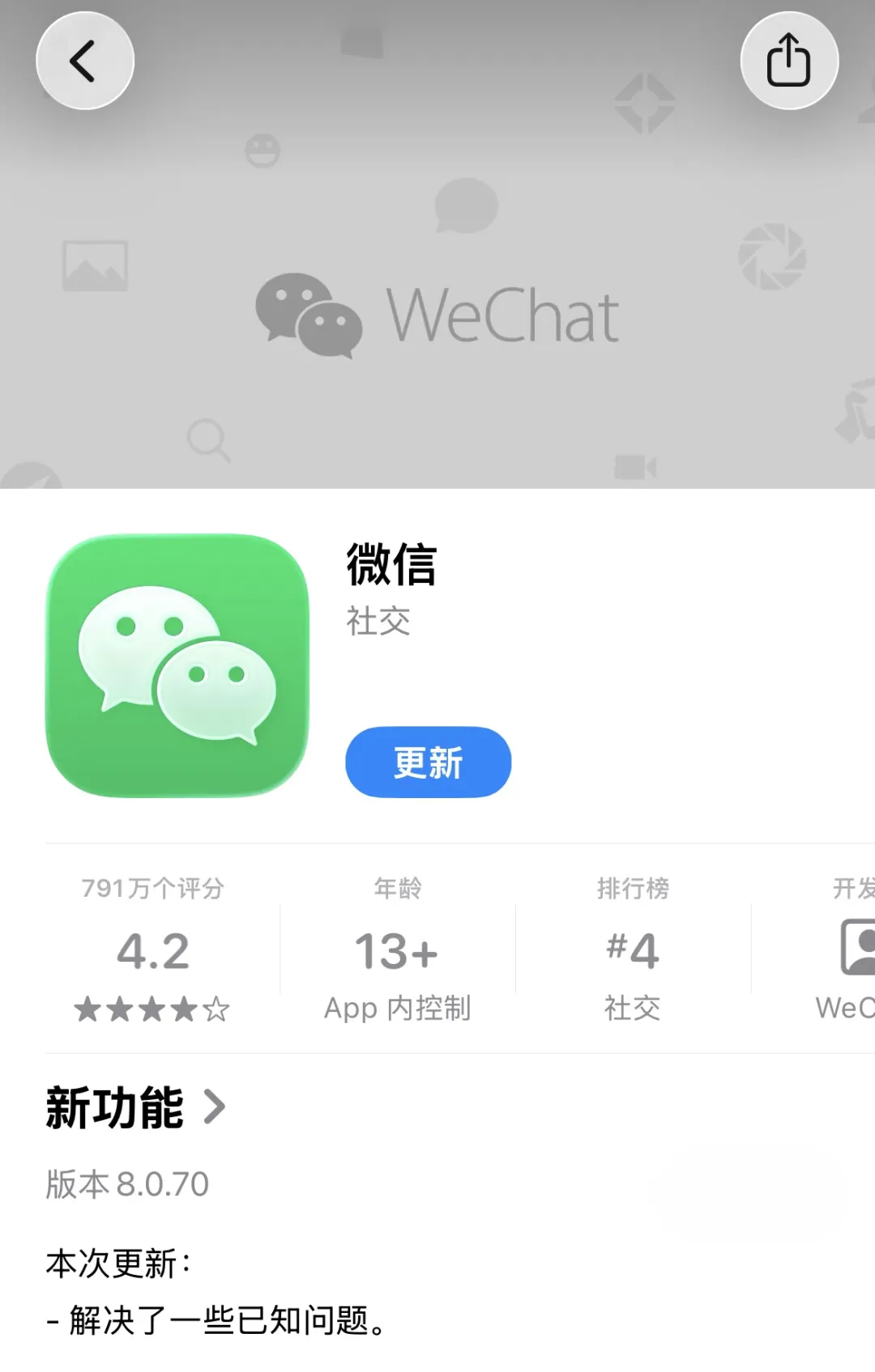 微信 8.0.70 for iOS 全新发布!请前往 App Store 获取更新