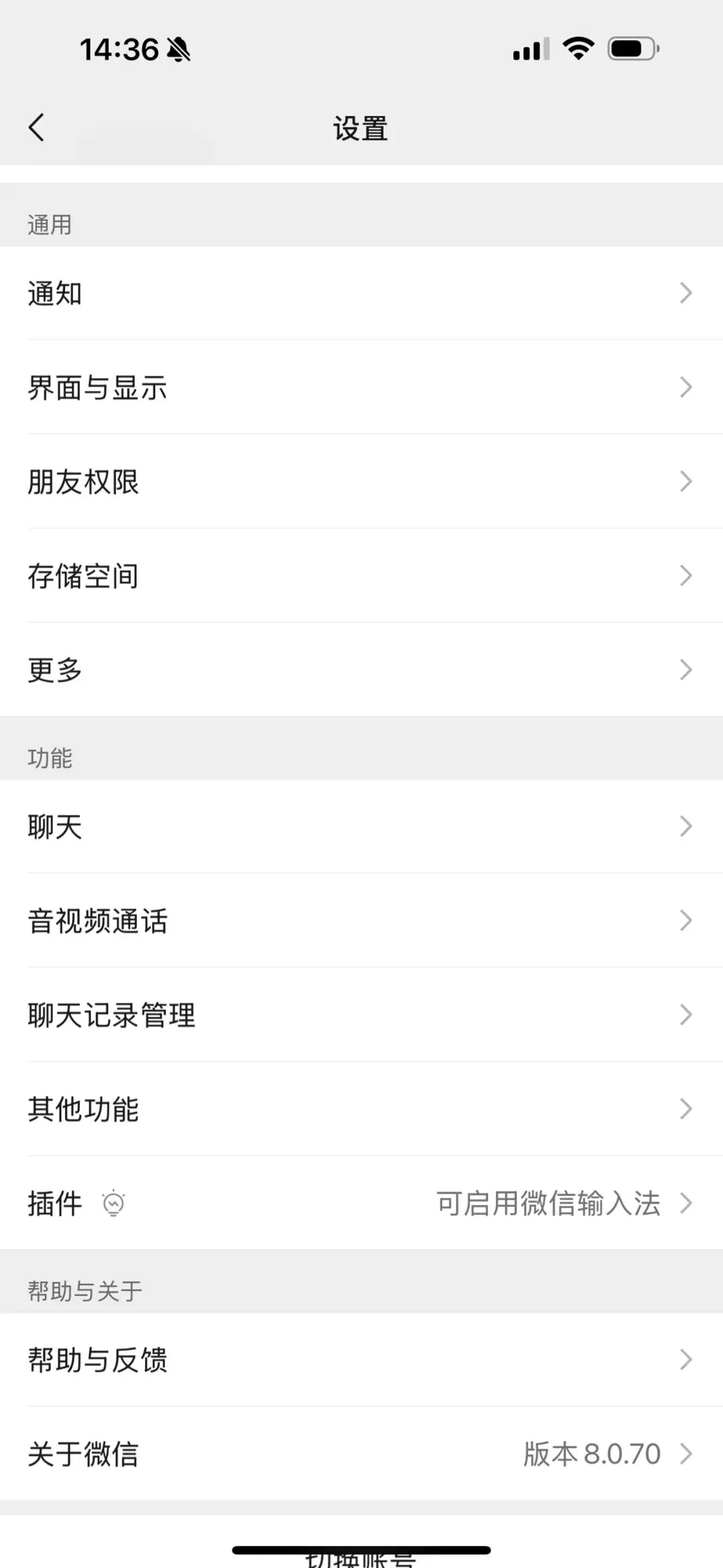 检查自己的微信版本有没有在8.0.70。如果没有,就点击“版本更新”