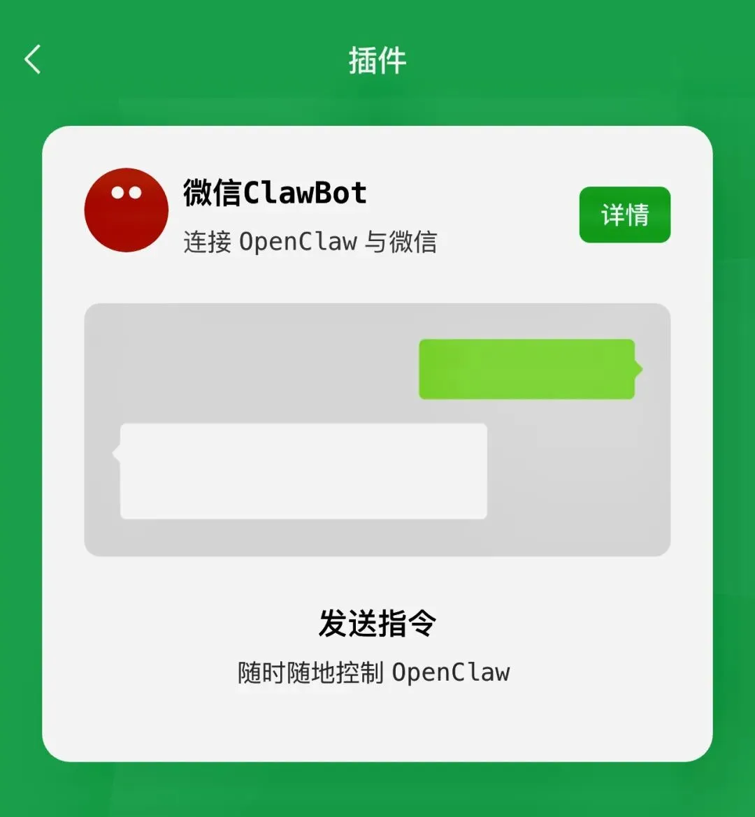 在你的微信搜索"ClawBot"或"小龙虾",开始对话。