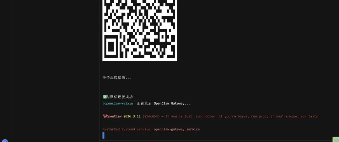 如果你有基础的,就能看懂上面这个话。在本地虾或者云龙虾中输入上述指令,安装这个插件,就会出来一个二维码,直接微信扫码,结束!