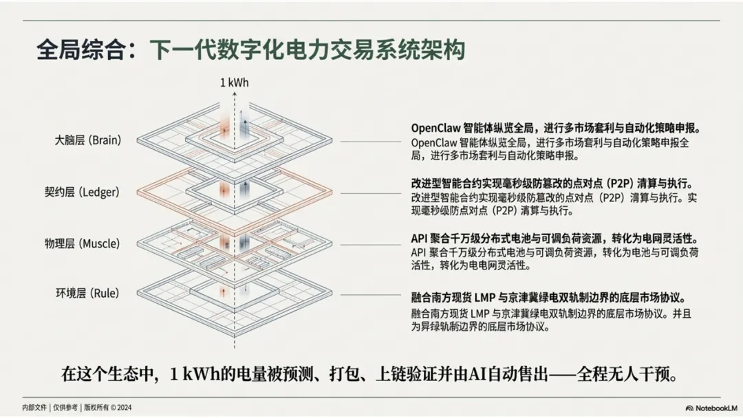 开源AI智能体框架 OpenClaw(龙虾) 对电力交易行业的颠覆性影响。OpenClaw 并非简单的聊天工具,而是具备感知、规划与执行能力的数字员工,能够保障企业数据主权并实现流程自动化。在宏观层面,AI Agent 驱动的算力爆发将催生**“算电协同”模式,重塑市场供需与绿电价值。微观应用上,作者描绘了从信息助理到流程执行官**,最终进化为自主交易员的三阶段蓝图。尽管面临决策幻觉与安全权限等技术挑战,电力从业者应积极拥抱这一技术,以捕捉智能交易时代的蓝海机遇。