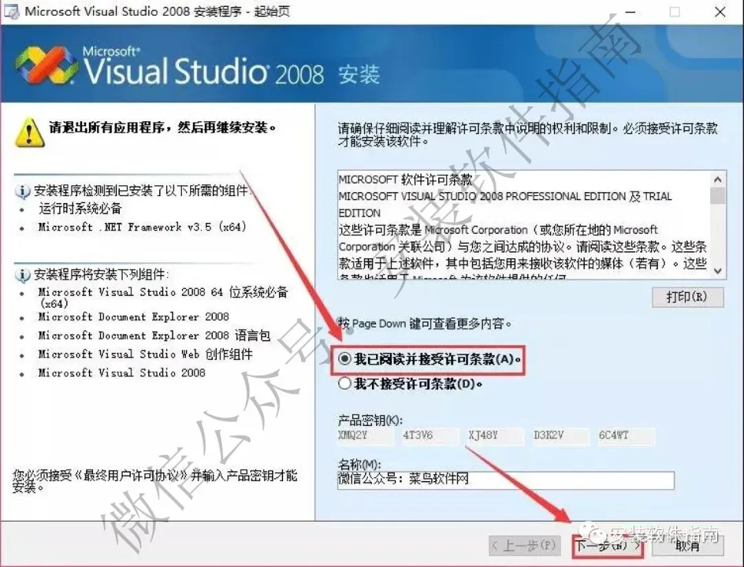 9.点【我已阅读并接受许可条款】点【下一步】