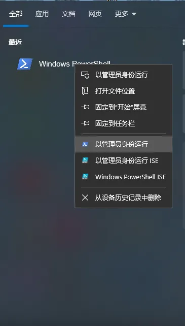 打开Windows PowerShell(管理员身份运行)
