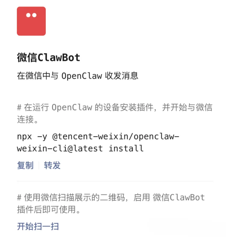 npx -y @tencent-weixin/openclaw-weixin-cli@latest install