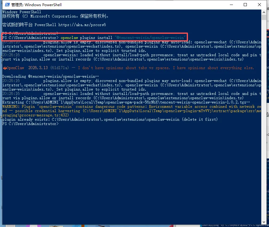 重新打开Windows PowerShell新窗口执行这个命令