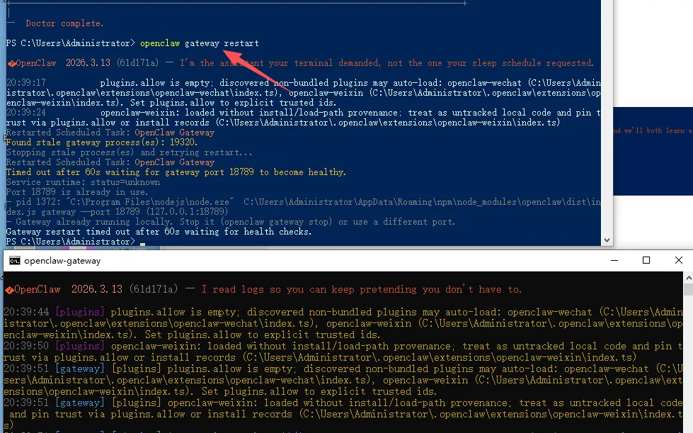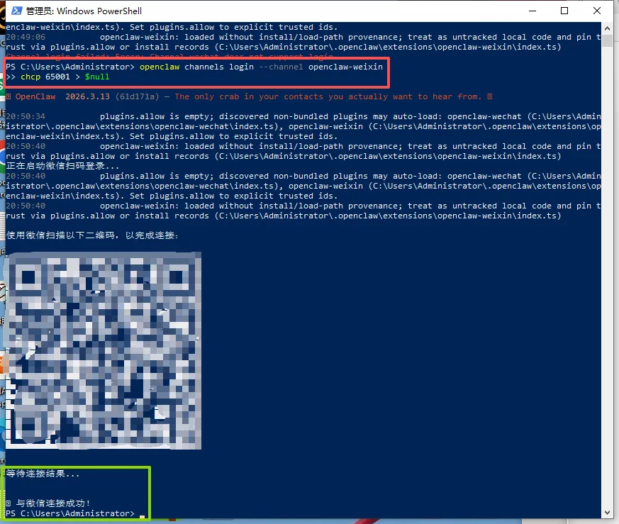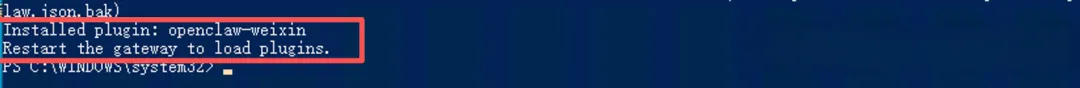 Installed plugin: openclaw-weixinRestart the gateway to load plugins.