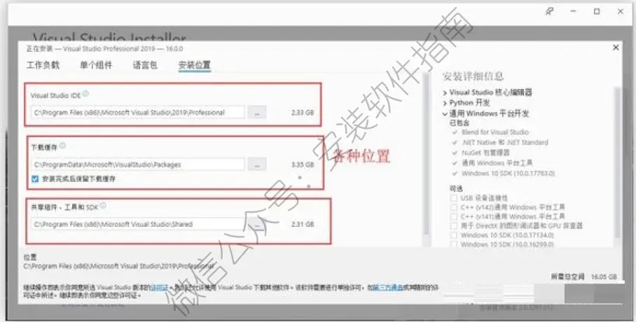 3、根据自己的开发需求,选择相应的工具,更改安装位置