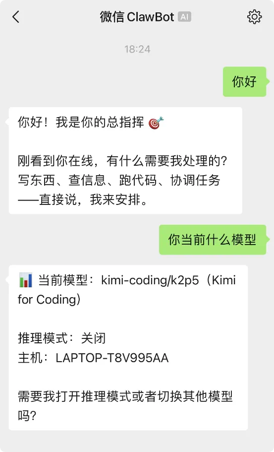 到这里就连接成功可以对话了。