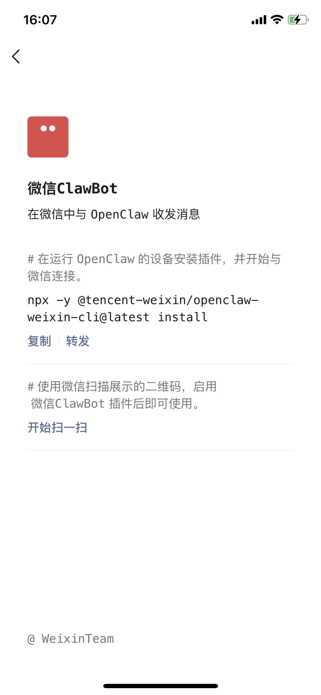 npx -y @tencent-weixin/openclaw-weixin-cli@latest install