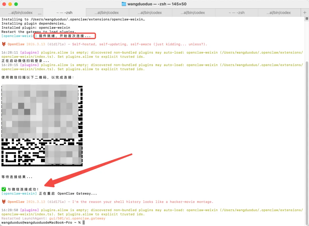 在 Gateway 电脑上跑这个,会弹出新的二维码: