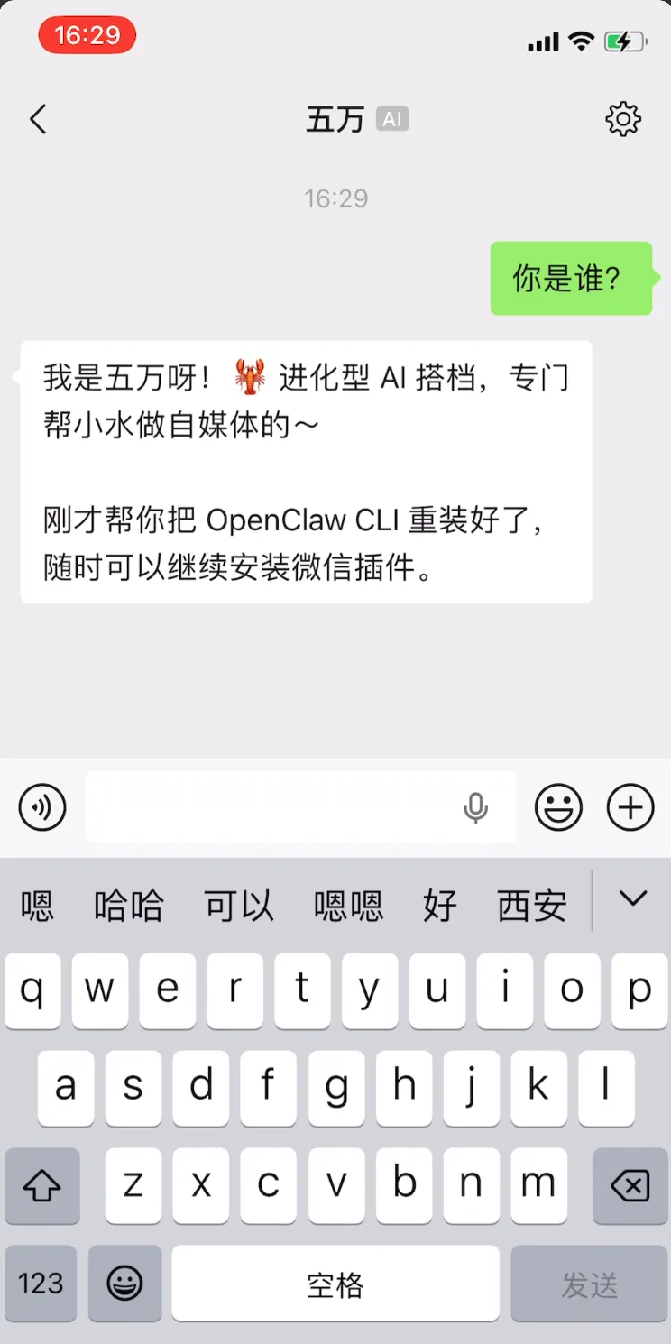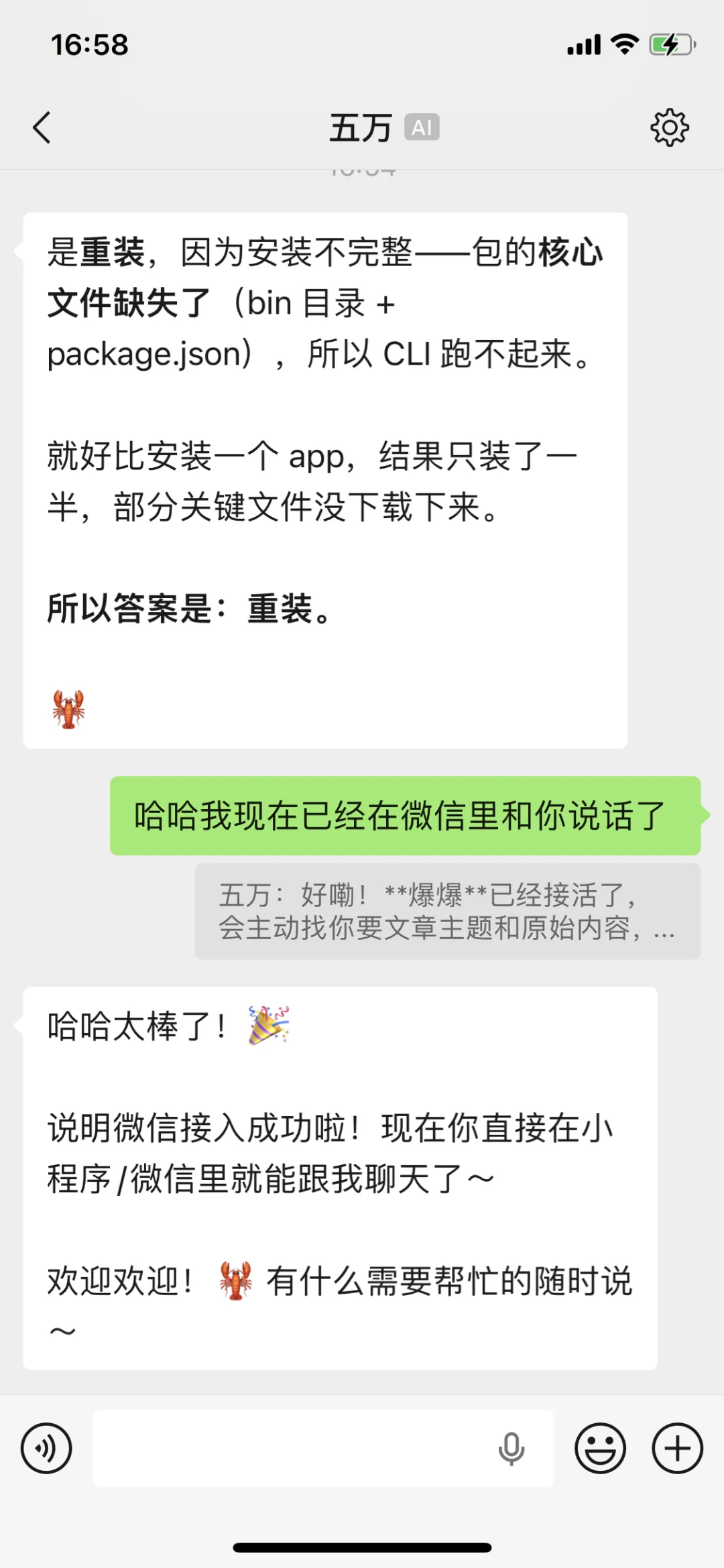 最后,到这里,你的微信已经和 OpenClaw 打通了。