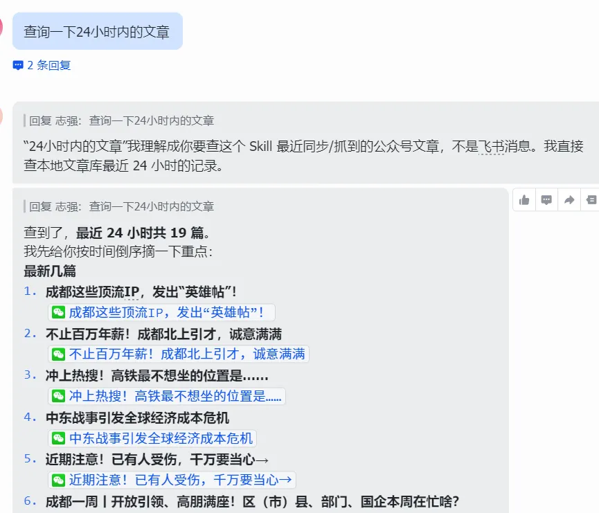 python scripts/wechat_article_assistant.py sync-logs --limit20--json查看最近文章