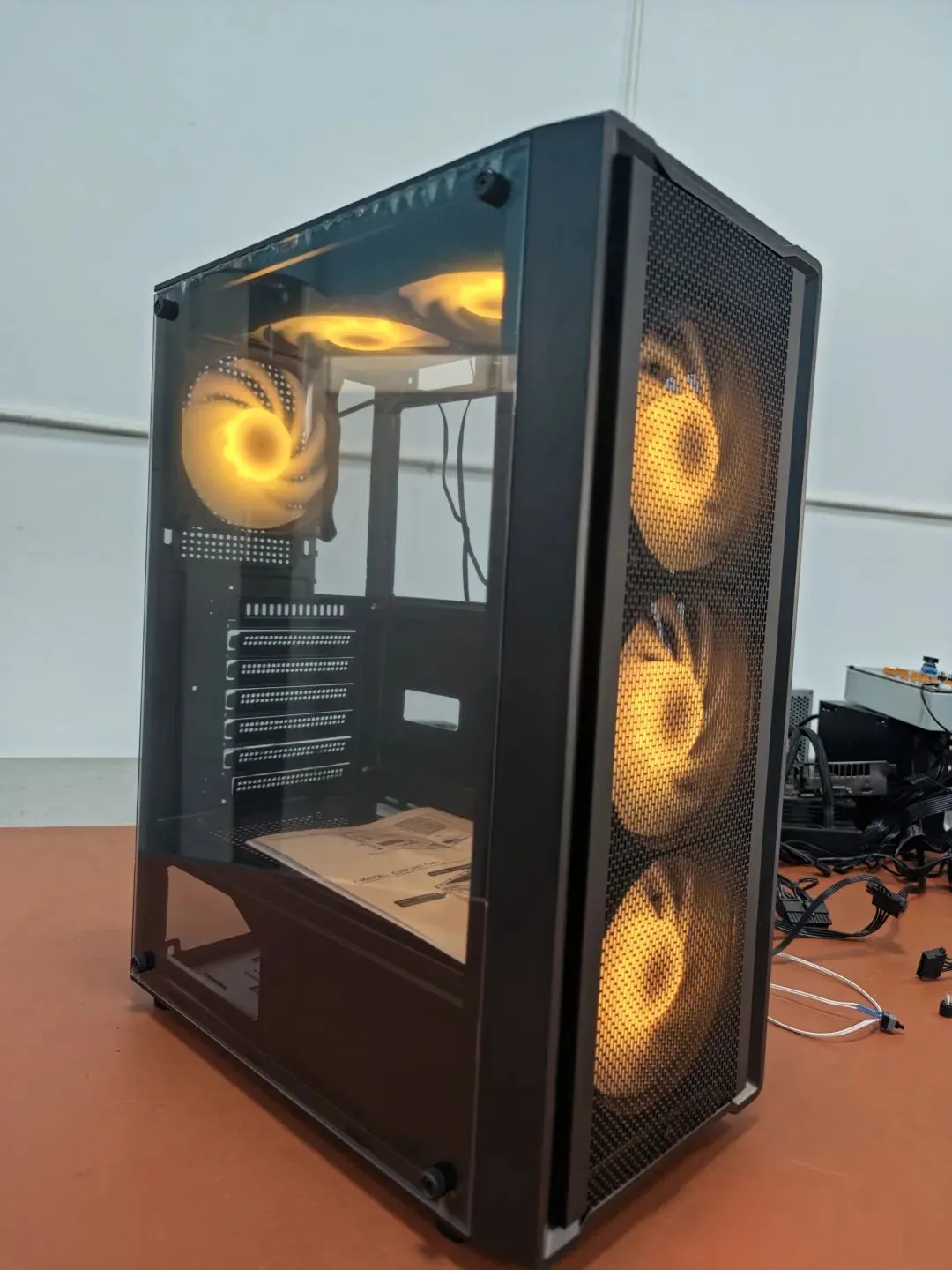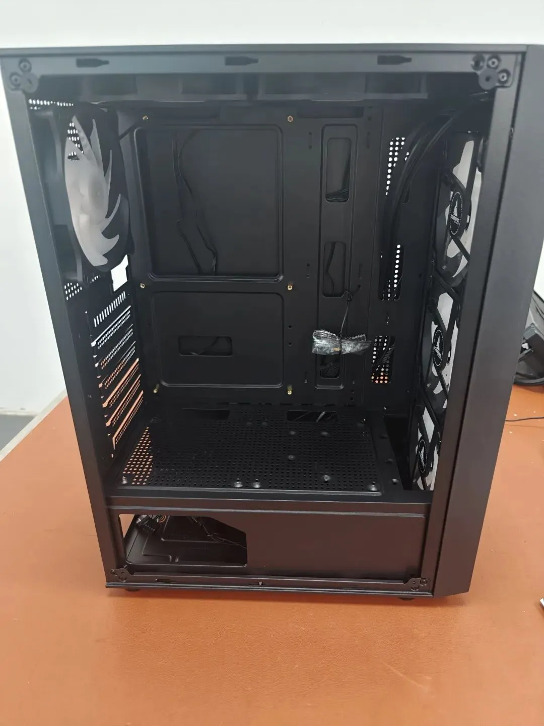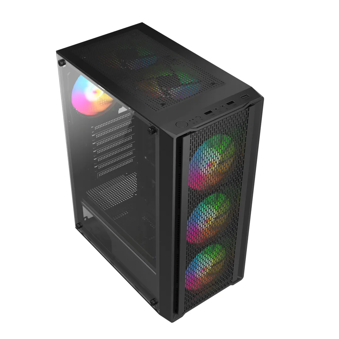 1. mesh front panel,Significant heat dissipation effect.2. Left Side Panel matches with 4 handscrews, easy to operate, Glass panel, Excellent Visibility; you can see the hardware inside.Right Side Metal with Cooling Hole, Superior Cooling Performance, Optimized Airflow, Durable and Reliable ThicknessOur gaming case features multiple top-panel USB ports (including USB1.0 and USB3.0), which offers great convenience for gamers:Easy access to USB drives, external SSDs, and capture cards for game recording/streaming. Most importantly, if you need TYPE C, We also can make it!Front support 3*12cm cooling fan,Superior Cooling Performance,Optimized Airflow,creating a powerful positive air pressure exhaust, efficiently dissipating heat from your CPU, GPU, and other core components, ensuring stable performance even during intense gaming or 3D rendering, preventing thermal throttling.Top suport 2*12cm cooling fan alsoRear:also support1*12cm cooling holeSupport ATX MotherboardAmple Cable Management SpaceEven first-time builders can achieve a professional, clean build in minutes.1. 4 Rubber Feet:Enhanced Stability & Anti-Slip,Lifts the case slightly off the desk to create a clear gap for bottom intake, improving overall airflow and cooling efficiency.2. Bottom Dust Filter:Blocks dust, hair, and debris from entering the case through the bottom vents, reducing buildup on critical components (CPU, GPU, fans) and extending their lifespan。The removable design allows for quick cleaning。Thanks for your interesting in this model, and if have any questions and worries, please feel free to contact me.