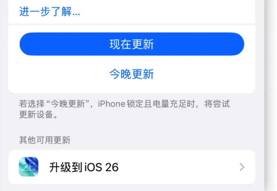 之前装过 iOS 18 的屏蔽更新描述文件的,先把旧文件删掉,再装新版,想恢复正常更新的时候,也是不复杂,设置—通用—VPN 与设备管理,把描述文件删除,系统通道就打开了。