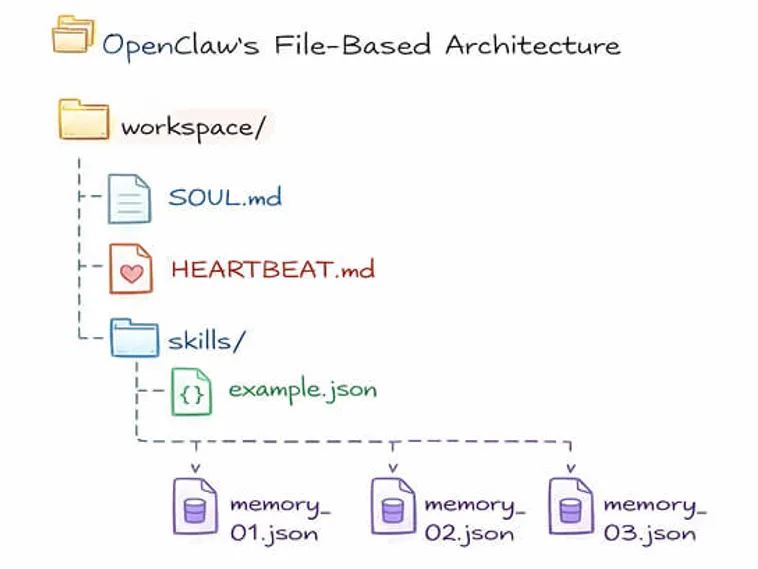 OpenClaw坚持“一切皆文件”的哲学,不使用传统数据库,而是通过 Markdown和SQLite实现持久化。
