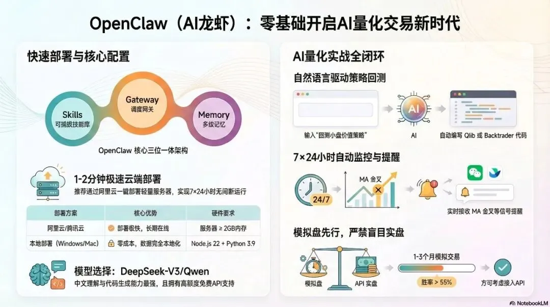 OpenClaw标志着AI量化进入“提示词驱动”的新时代,其在教育、研报分析和模拟交易中表现出极高的实用性。