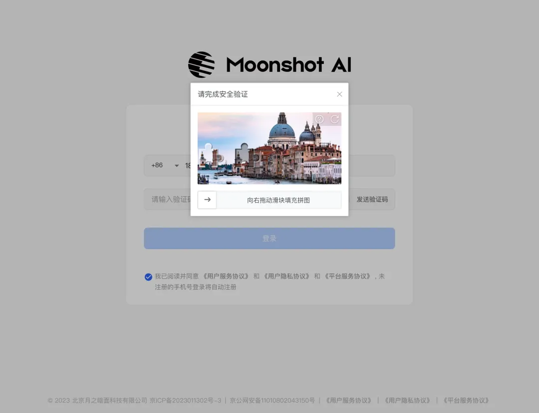 点击「发送验证码」后,会弹出一个滑块拼图验证。按照提示向右拖动滑块,将拼图碎片拖到正确位置即可。