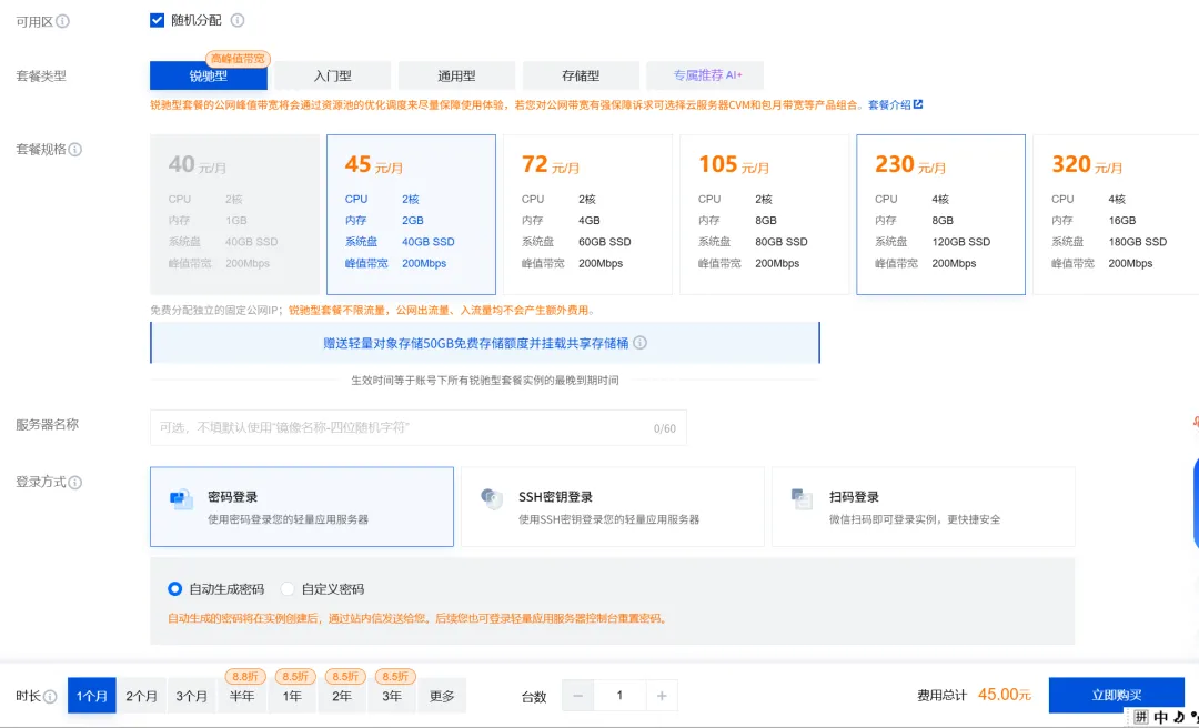3,选套餐和配置:按需购买,如果你只做文案类任务,2核4G就完全够用。
