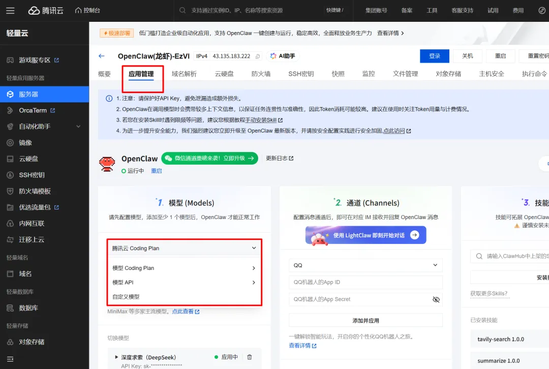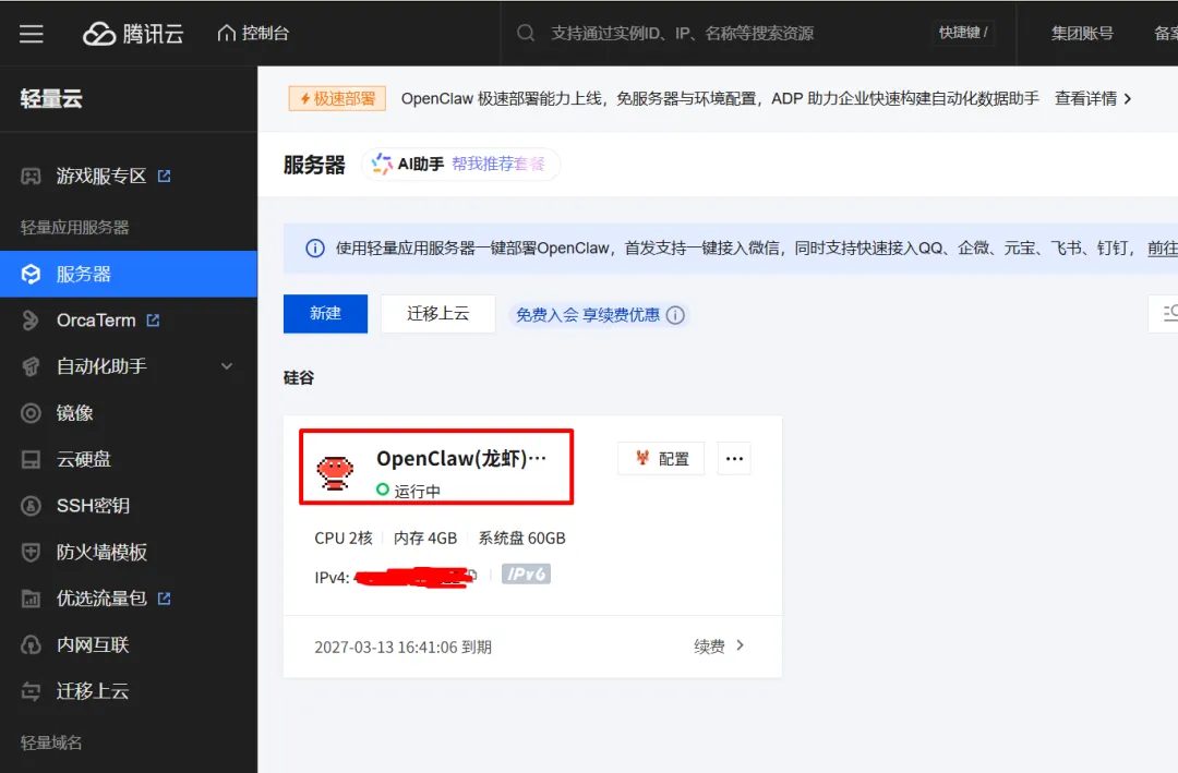 已部署好OpenClaw的腾讯云轻量服务器