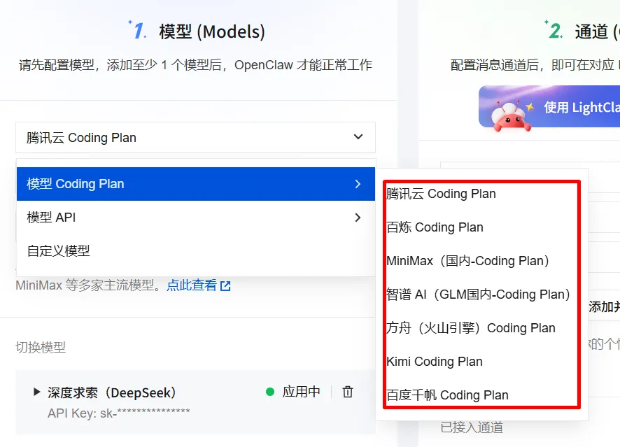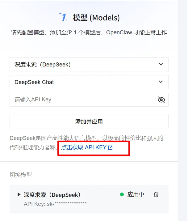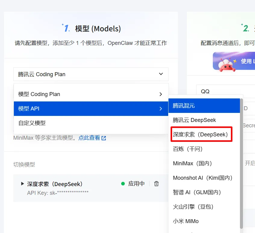 对于初次尝试 OpenClaw 的小白,建议使用 DeepSeek、Kimi等 API 方式接入。