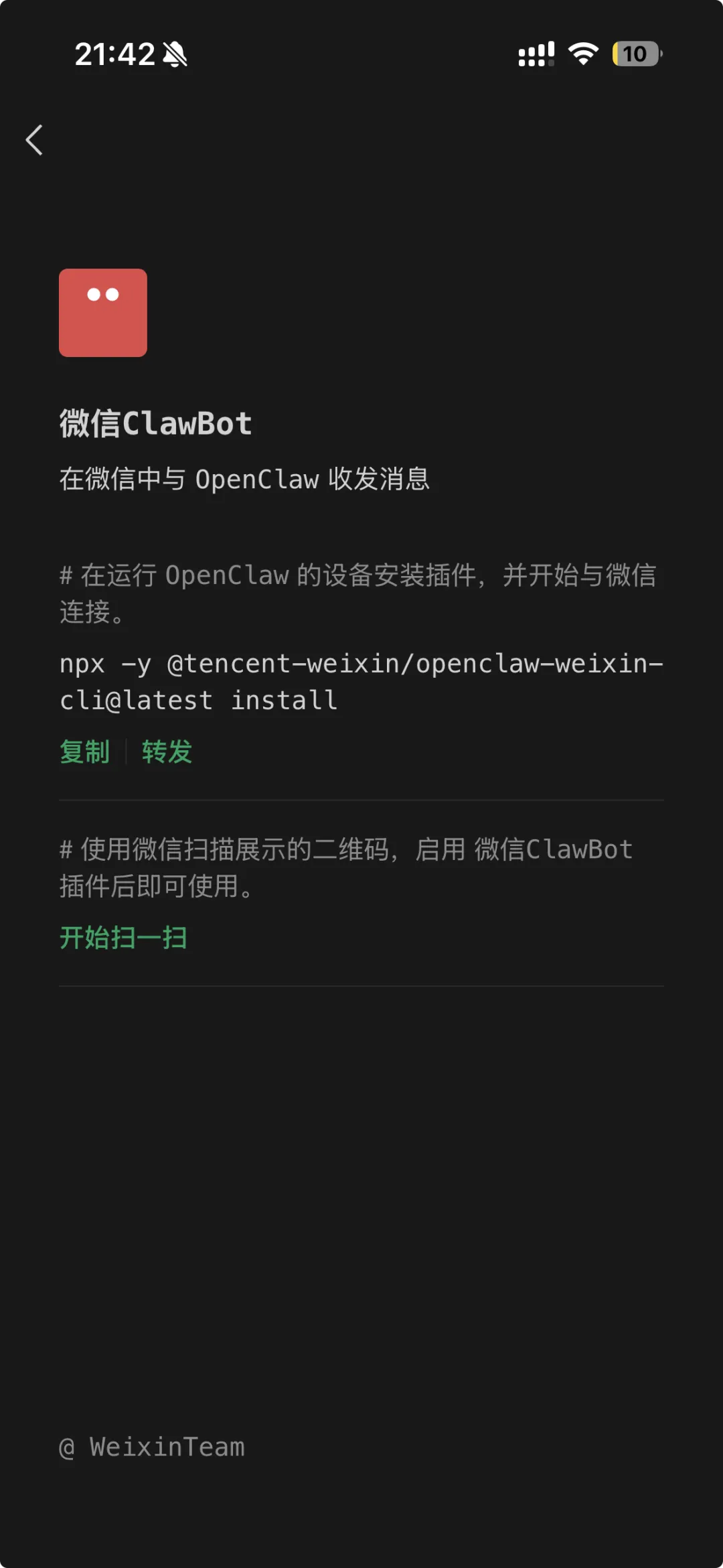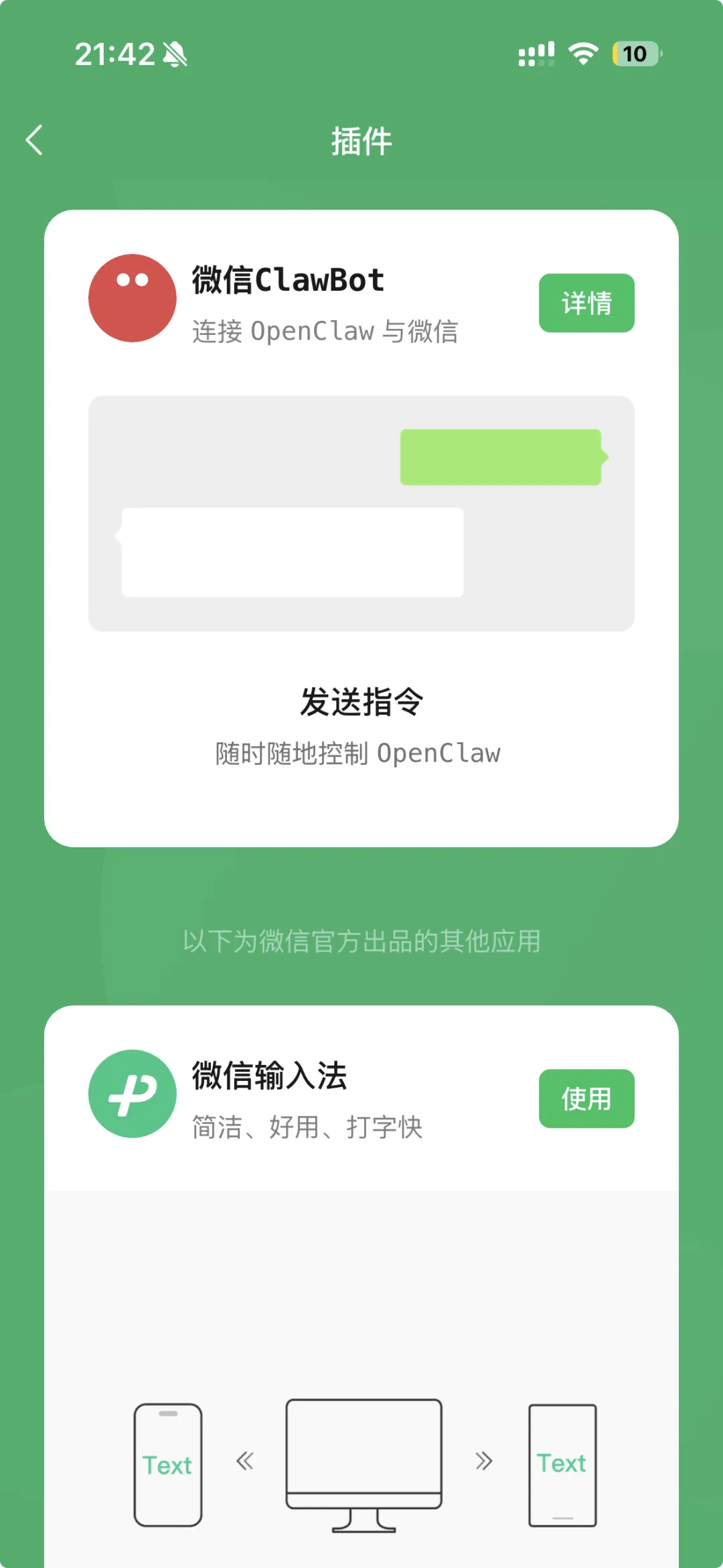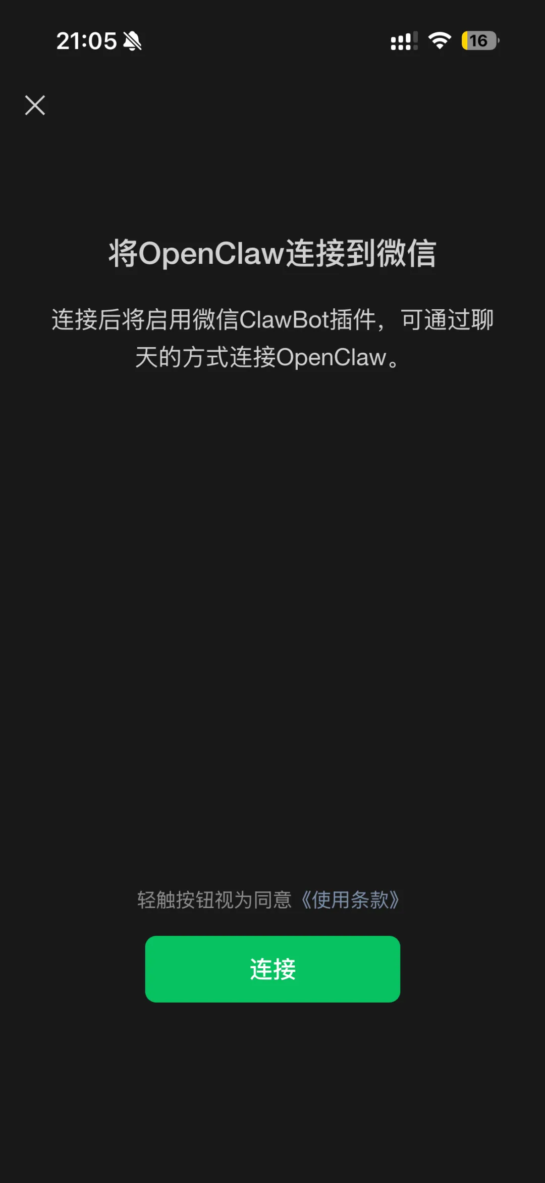 今天微信上线了官方的ClawBot插件,自此国内御三家IM: 飞书、钉钉和微信均支持养龙虾!以下从0到1教你2分钟内把你部署在服务器的OpenClaw接入微信:1. 微信打开 我-设置-插件 查看微信Clawbot 并点击详情如果你的插件没看到 微信ClawBot,先确认你的微信更新到了最新版本 8.0.70,更新还看不到需要把微信整个退出再进入即可!(当然需要iPhone且收到灰度才有,安卓目前还不支持)npx -y @tencent-weixin/openclaw-weixin-cli@latest install