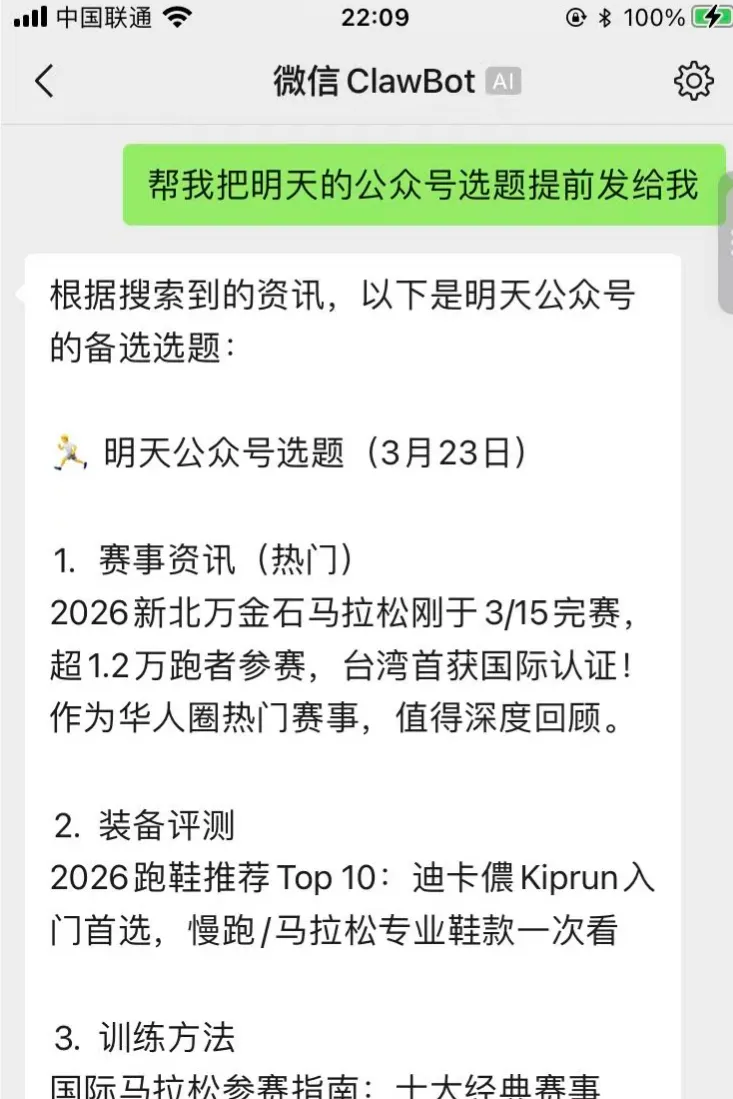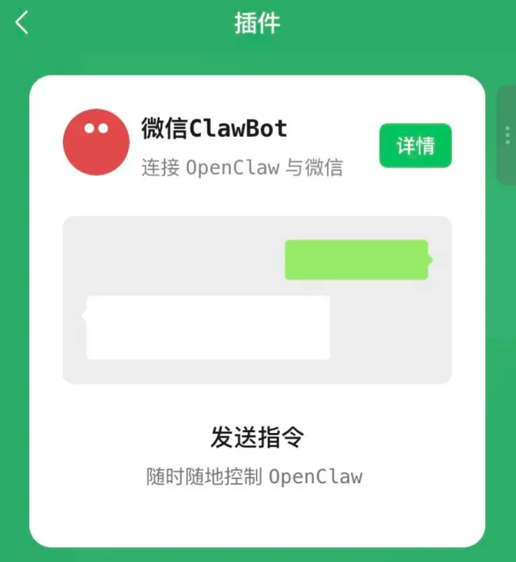 上篇文章有写过QClaw很鸡肋,为了实现在微信上接入OpenClaw,Qclaw绕了一个大弯通过客服消息发送指令给OpenClaw,入口还不在首页。其他野路子就更糟糕了,动不动就会封你号。要想获得不错的用户体验,这件事只能是微信自己来做,想做成什么样,他们有100%的决定权。这不,今天微信官方迫不及待发布了微信ClawBot,用来链接OpenClaw与微信。实现方式也非常巧妙,以插件的方式安装,意味着微信不会强制你使用,想用你就安装,不想用也不影响你使用现有功能。苹果手机将微信升级到最新版8.0.70,打开微信,进入我>设置>插件, 即可安装ClawBot。安装过程非常简单,在装有OpenClaw的机器直接运行命令npx -y @tencent-weixin/openclaw-weixin-cli@latest install
