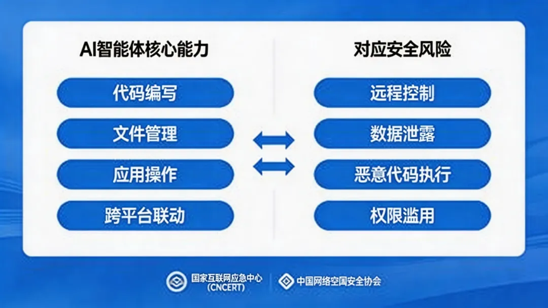 但强大的能力也伴随着巨大的风险。这类工具就像一把“双刃剑”:如果配置不当,你的电脑可能会被远程控制、隐私数据可能泄露、甚至被植入恶意代码。为了帮大家安全“玩转”龙虾,国家互联网应急中心(CNCERT)和中国网络空间安全协会联合发布了权威安全指南,以下为核心要点梳理: